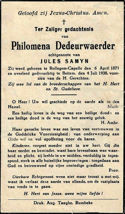 Klik op de naam om het bidprentje te bekijken. Sluit de foto door een klik op het X-teken onderaan rechts.